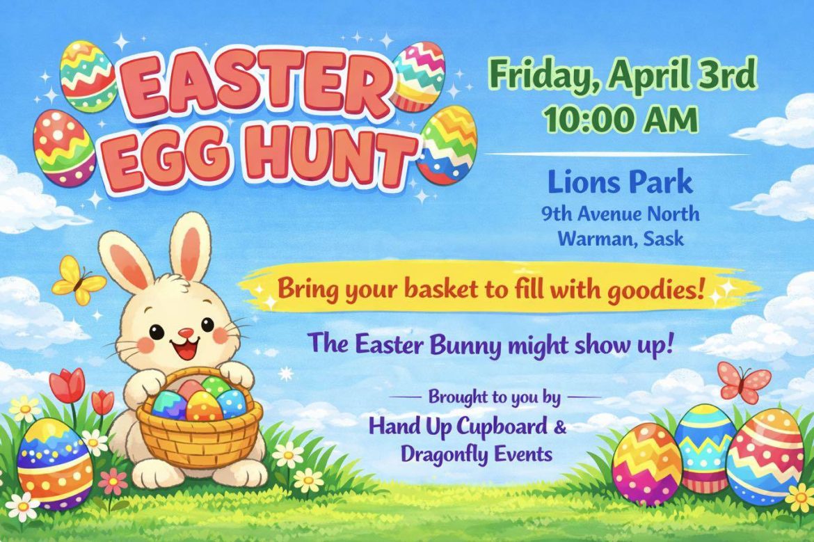 Organized by the Hand Up Cupboard in partnership with Dragonfly Events, the popular community event is set to take place on Friday, April 3rd at 10:00am at Lions Park, located on 9th Avenue North in Warman.