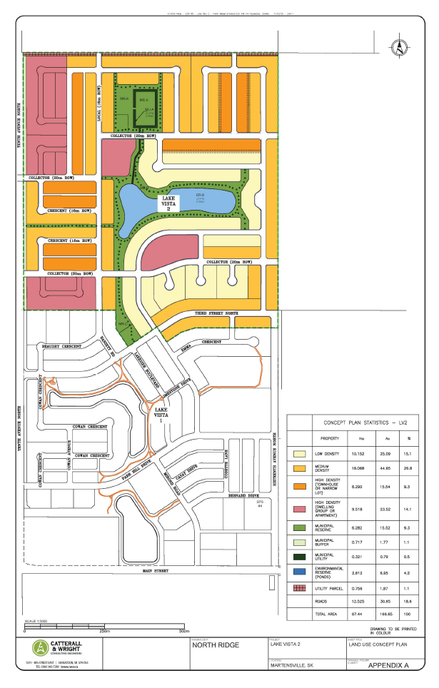 The Lake Vista 2 Concept Plan was previously presented during the March 10th Committee of the Whole meeting, outlining the proposed development of approximately 67 hectares (166 acres) of land within Martensville’s northeast growth area.