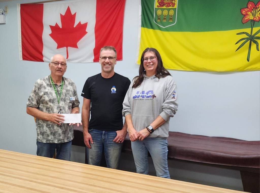 ABOVE: Ed Nowakowski accepted a cheque on behalf of the New Horizons Senior Centre from Jason and Carrie Rolfes of Jason’s Auto Glass. (Submitted)
