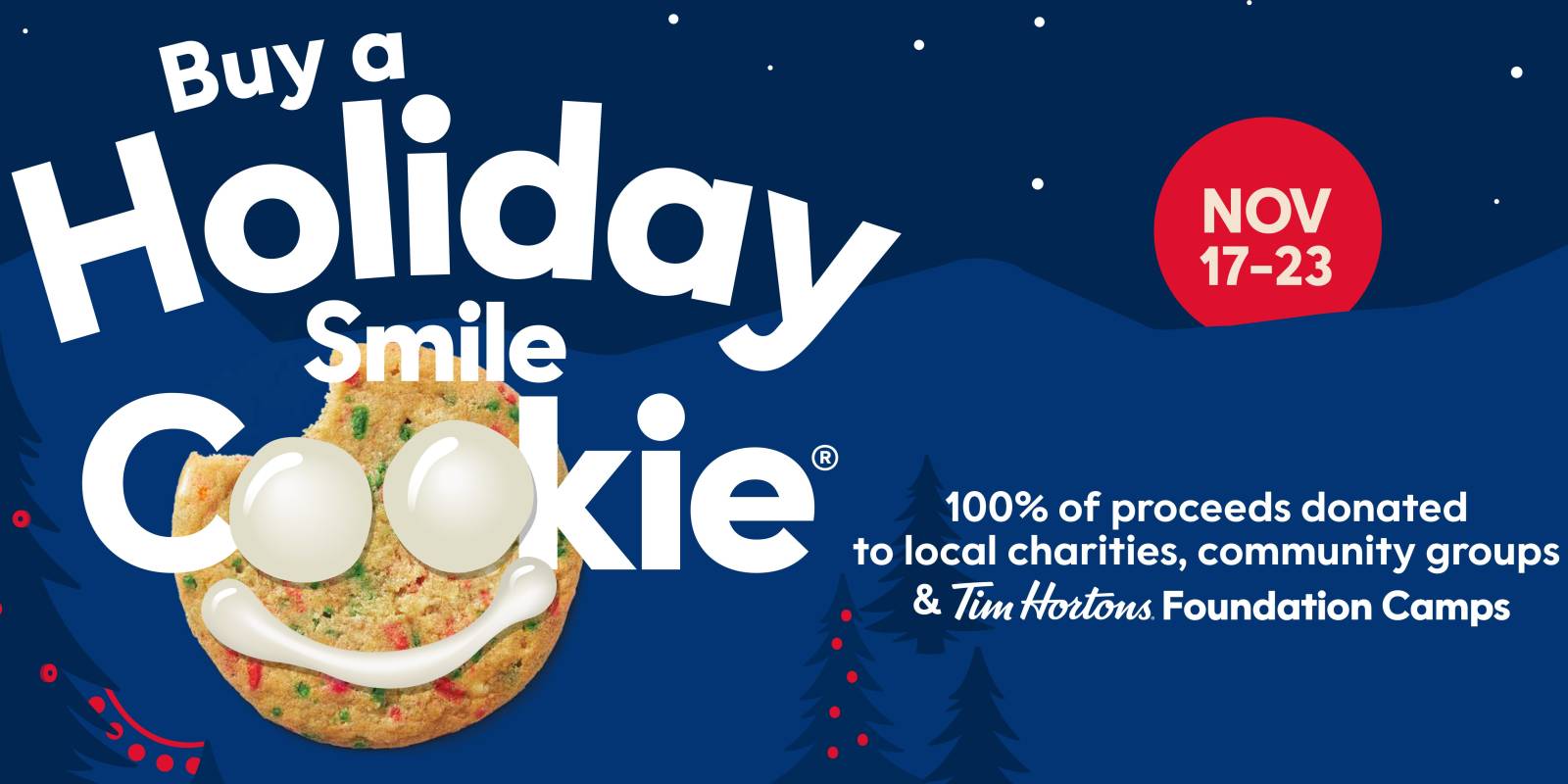 Tim Hortons’ Holiday Smile Cookie campaign is back, and this year, 100% of proceeds from every cookie sold will be donated to local charities, community groups, and Tim Hortons Foundation Camps across Canada.