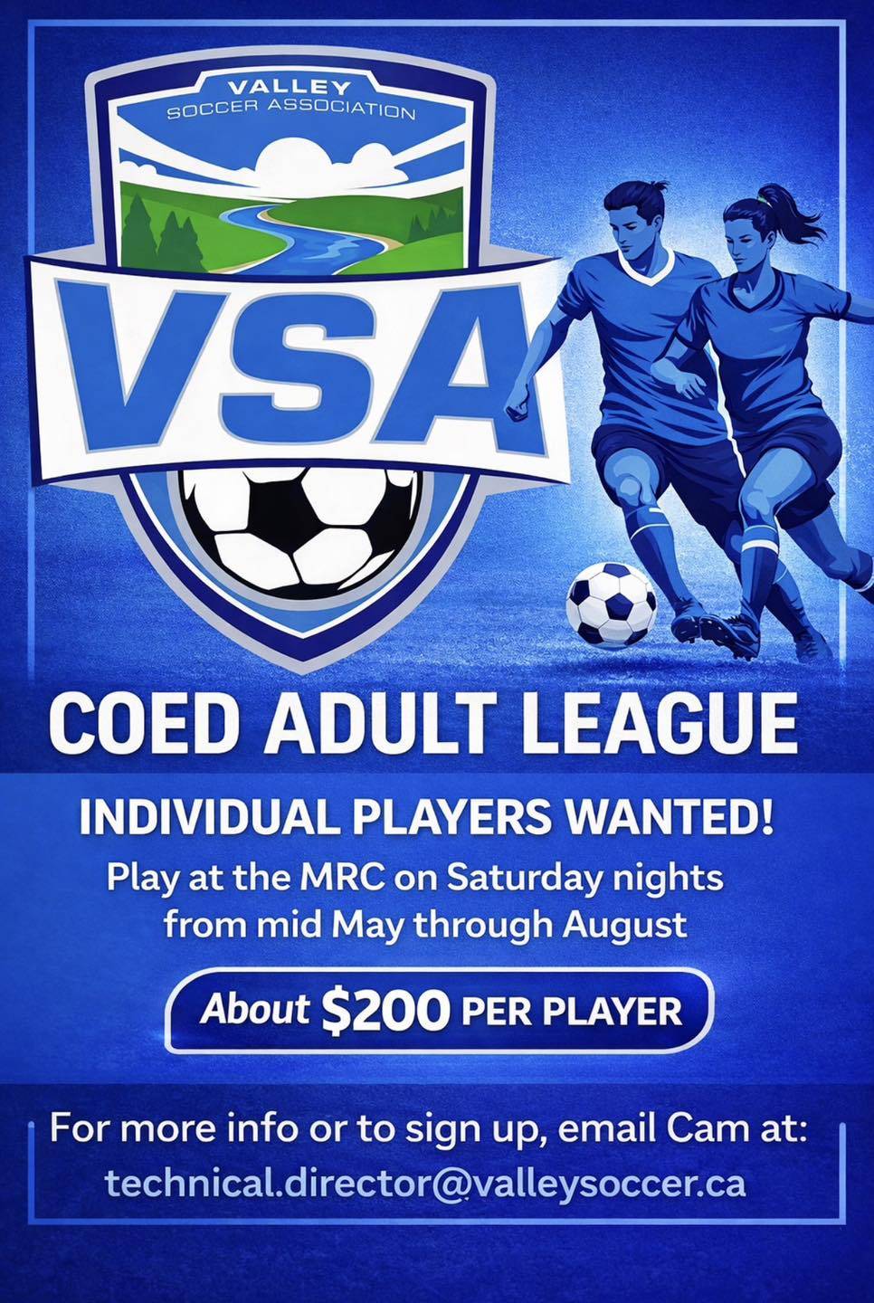 With multiple teams already registered, several are still in need of additional players to complete their rosters. Anyone interested in joining or looking for more information is encouraged to contact Cam at technical.director@valleysoccer.ca.